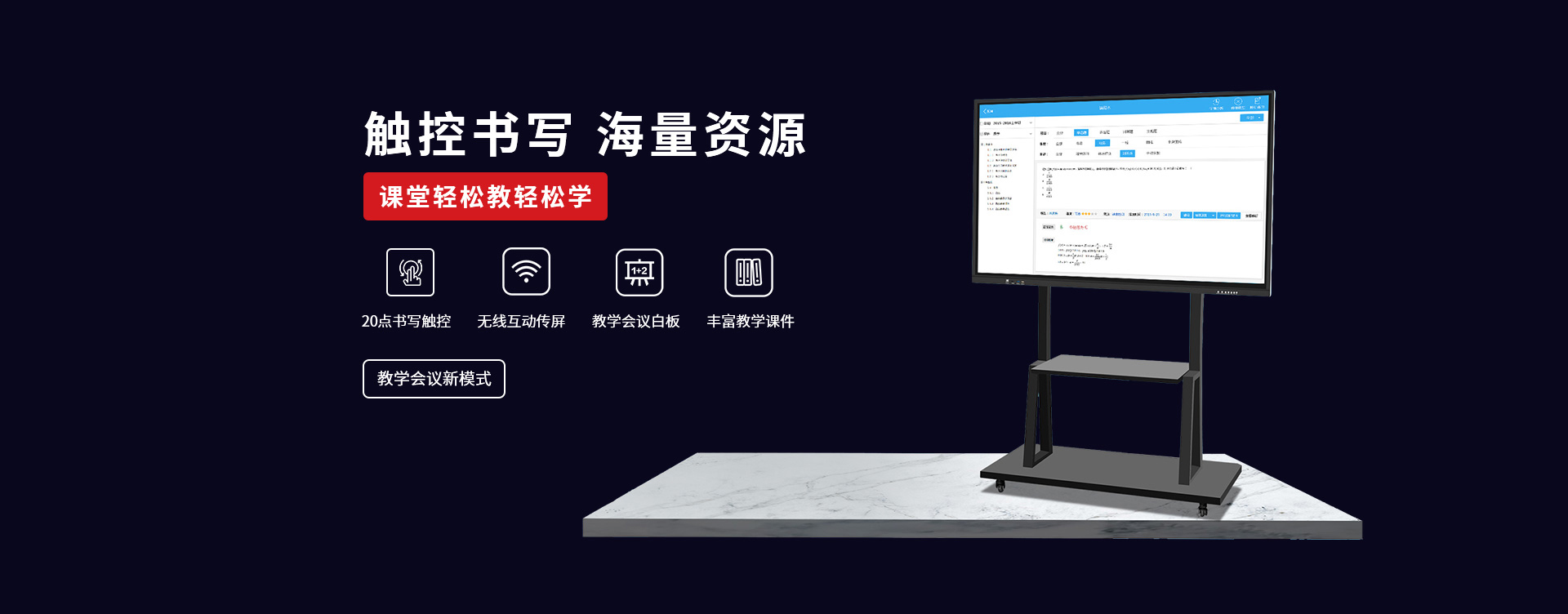 〔教育智慧黑板〕 是新一代教學(xué)顯示設(shè)備,具有高清顯示、高精度觸摸操作應(yīng)用,黑板書寫教學(xué)功能與一身;內(nèi)置安卓、windows系統(tǒng),可滿足教學(xué)不同的應(yīng)用軟件使用;純平面書寫黑板,適應(yīng)粉筆,無塵粉筆、水性粉筆書寫,適合不同環(huán)境應(yīng)用;觸摸切換書寫黑板與屏幕顯示,可讓老師快速進行教學(xué)應(yīng)用切換;純平面外觀,解決傳統(tǒng)推拉黑板的笨重,復(fù)雜的結(jié)構(gòu)特點,大大提升了教師授課的體驗感和演示效果。